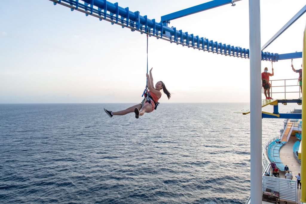 Waterparks, sports court, Pools, Serenity Adult – Only Retreat, Family Feud Live, Cloud 9 Spa, Casino, miniature golf, ropes course, arcade, Bolt: Ultimate Sea Coaster, Kids Clubs, Trivia.